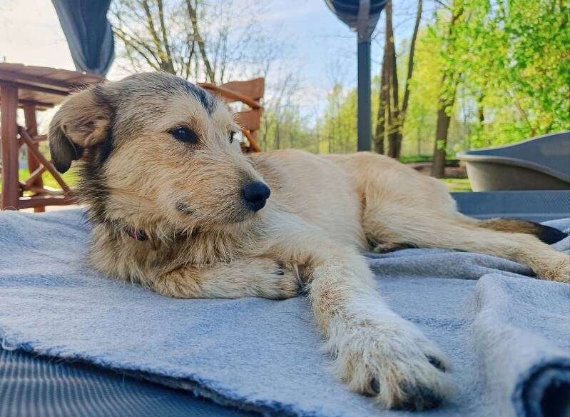 Er ist ansonsten ein fitter und gesunder Hund, der gerne und gemütlich spazieren geht, aber auch einfach entspannt in seinem Hundebettchen liegen möchte.